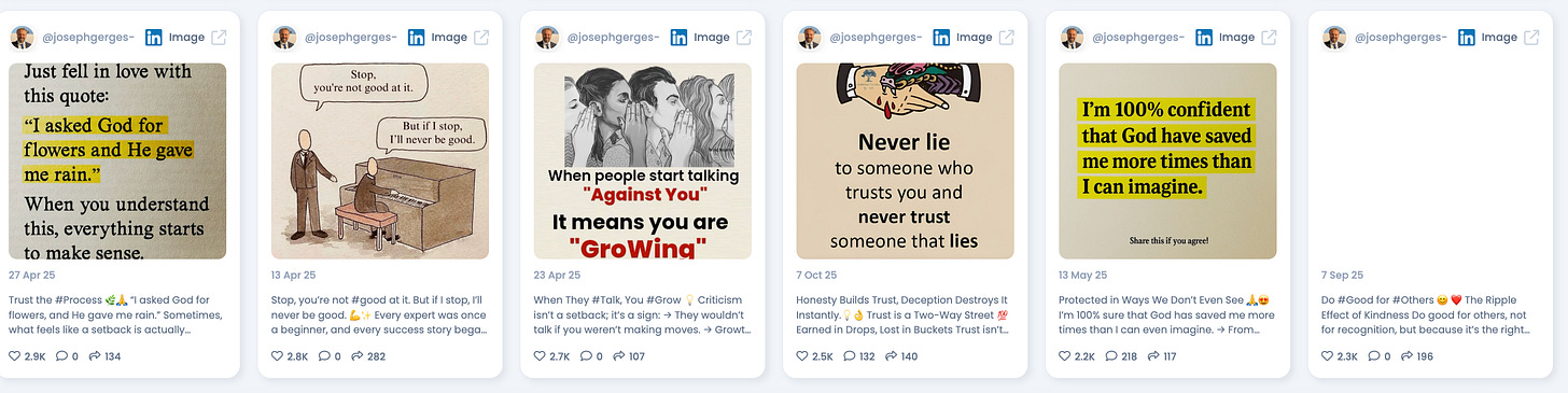 Anton tells a story. He’s not trying to get likes on LinkedIn. The other creator is the opposite.